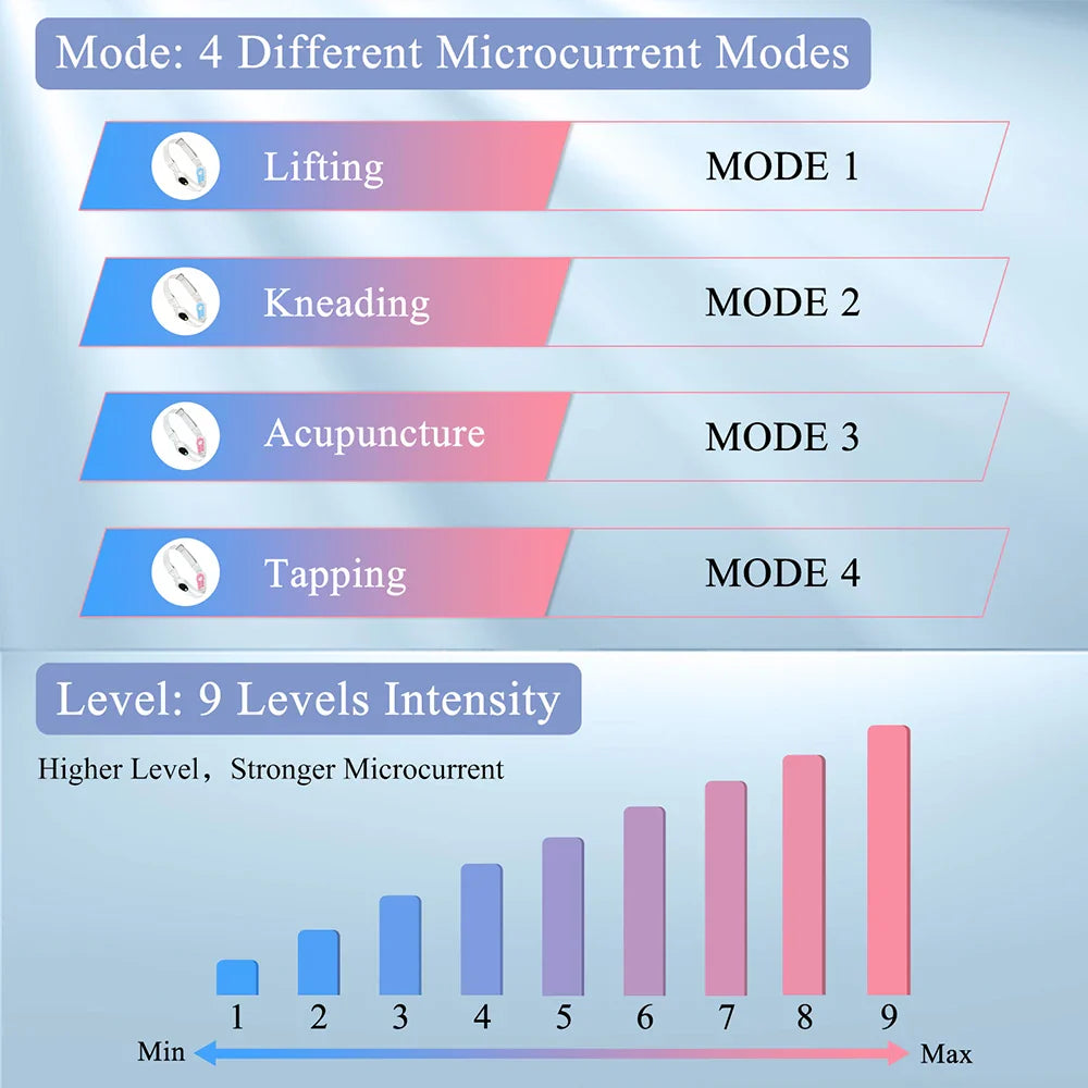 EMS-vibrationer drar nytta av låga faradiska strömmar som den levererar till huden vilket stimulerar alla nervändarna vilket får ansiktsmusklerna att dra ihop sig och slappna av med återkommande intervaller. Det är den stimuleringen som tonar och stramar din hud samtidigt som den omformar ditt ansikte! Den bränner också överskottsfett i ditt ansikte för att hjälpa till att definiera v-formlinjen.